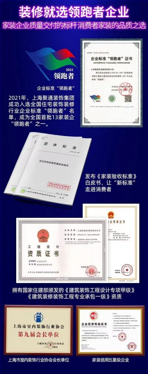 用匠心建设美好人居,用品质成就幸福生活,聚通装潢风雨28载初心不改。简单的事重复做,才能成就金鲁班施工品质;重复的事用心做,才能收获数十万的“老朋友”。聚通装潢始终坚持将“品质”渗透到每一个角落,致力于成为上海业主值得信赖的家装服务商,一步一个脚印,不断创新、积淀、变革、绽放,用实力和品质去完成每一份嘱托。