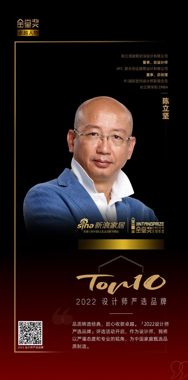 其中,陈立坚建筑空间设计有限公司董事、总设计师 AFC 联合创企建筑设计有限公司董事总经理 IFI 国际室内设计师联盟会员 长江商学院 EMBA 陈立坚表示:品质缔造经典,匠心收获卓越,「2022设计师严选品牌」评选活动开启,作为设计师,我将以严谨态度和专业视角,为中国家庭甄选品质制造。