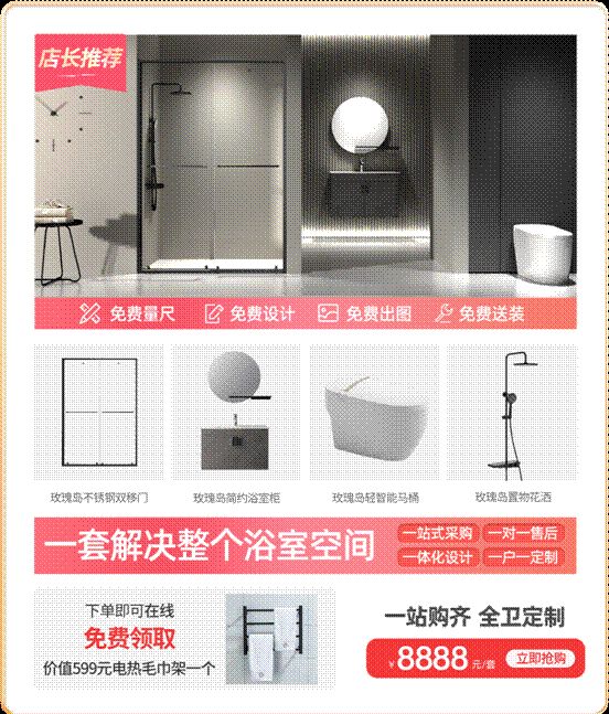 (心动不如行动,偷偷告诉你:前30名 线上 全款 下单8888元全卫套餐者,即送599元电热毛巾架)