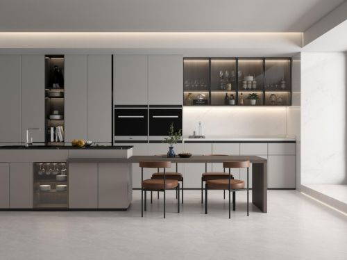 通透视觉效果、细腻的纹理,极大的展现出d级石材的自然质感,减少家居繁缛缝隙,延伸出大气、时尚的装饰风格。