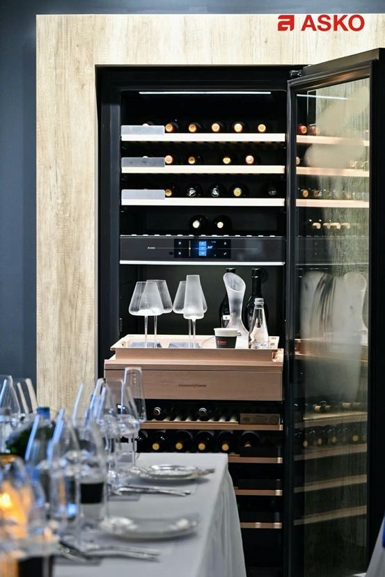 于醇境之地共赏智慧窖藏,于历史沉淀共品百味臻酿。在讲述酒品背后传奇故事的同时,刘巍然讲师也以专业侍酒师的身份向来访雅士现场科普餐酒搭配的基本原则,展示专业的葡萄酒品鉴方法,并精心选配d级窖藏,佐以鲜盛至味,以一场舌尖上的芭蕾,带来奢享侍酒体验。斯洛文尼亚被誉为欧洲葡萄种植带心脏,ASKO于此奉上产自斯洛文尼亚四大酒庄的玛珊海藏桃红起泡,国窖巴尔达伯爵夫人起泡,仙鹤桃红年份起泡,葡图伊长相思干白,诗黛雅琼瑶浆橙酒,爱则奇陶罐赤霞珠干红,葡图伊百比诺1983年老酒与产自意大利的加伯莱阿奎莱斯长相思干白,加伯莱傲图莱弗斯科干红共九款臻选佳酿,ASKO智能三温区酒柜赋予其精准定位,轻松锁定佳酿位置,随时监控存酒状态;最多专业存储190瓶葡萄酒,打造恒温、恒湿、避震、避光、祛味的专业大容量储酒环境,独特精准控温技术激发酒品标志性口感,媲美专业酒窖,于赏味一瞬感受万般滋味。百年匠心工艺奢护至醇至厚,完美诉说醇香一世,高贵一生。迄今,ASKO智能三温区酒柜共申请了专利23项,其中发明专利18项,也获得了代表全球工业设计最高水平的2021年德国IF设计金奖,得到了国内外的广泛认可。