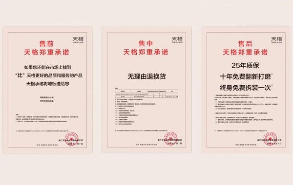 面对线下向线上转移的消费趋势,天格深知,像地板这样的大宗耐用建材类消费品,在线上的销售存在有流量、体验难等痛点,因此其在行业内率先走通了线上赋能线下、线下承接线上的新零售模式。同时,天格正在筹备依托产业园打造的智慧物流体系,彻底解决最后一公里的问题。2022年,天格将加速推进安装服务站的全国覆盖和包括“25年质保、10年免费翻新打磨”等在内的“五大承诺”的落地,夯实“服务保障体系”,构建起相对于高品质的第二核心竞争力——好服务、好保障,以应对日益激烈的国际竞争,保持领先身位。