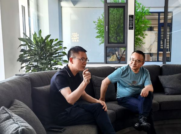 △ 广东省门窗协会秘书长林诚博士和圣象乐屋门窗常务副董事长明照航先生正在深入交流!