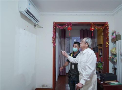 在老人的卧室和客厅,海尔智家志愿者为老人安装了全新的智慧空调产品。
