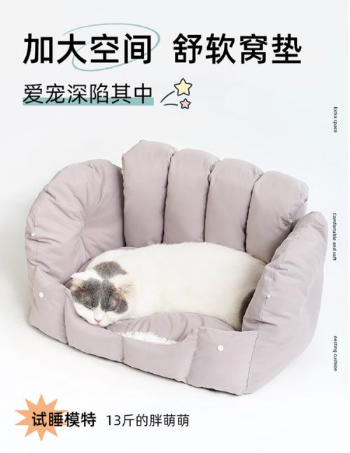 加大空间,舒软窝垫,不仅冬天可以聚暖,秋天炎热时还可以当做垫子在空调房使用,猫咪也是喜欢温暖的猫科动物,此款窝符合你的选择!