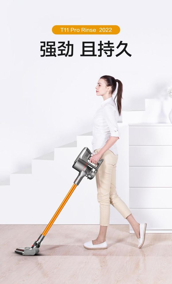 小狗T11 Pro Rinse是全网吸尘器销售的“热潮制造者”,诞生一年多时便已经创下了10万+的销量,实力与口碑双高。小狗T11 Pro Rinse整机额定功率高达500W,单电机吸入功率高达165AW,急速气流可深入每个角落,灰尘、毛发、皮屑、螨虫等各类尘污一吸即净,轻松为用户带来干净清爽的家居环境。大容量高性能锂电池能够在标准档下提供长达65分钟的续航,用户使用时无需频繁充电,搭配可充电、收纳的挂架,随取随用更便捷。它的机身采用分体式结构设计和电池扇形环绕布局,减轻主机重量和体积,单手举起毫不费力,力气较小的女士或老人均能轻松使用。如果想要兼得更轻的机身和强效清洁效果,T11 Pro Rinse也可以选配旋转擦地刷,让紧附在地面上的顽固污渍、陈旧污渍都无处可逃。