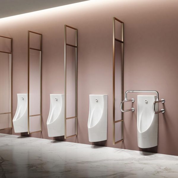 小便斗是专为男士设计的卫浴产品,主要用于公共场所,尤其是商场、高级CBD等。在公共场所,由于人流量大,给小便斗的清洁和维护带来了压力;同时,人员的交叉使用也有着健康风险。九牧运用数智卫浴的前沿技术,推出商用小便斗系列,以“平台化、多款型、多尺寸、多种安装方式”等特点,适配多种使用场景,持续赋能公共卫生健康。