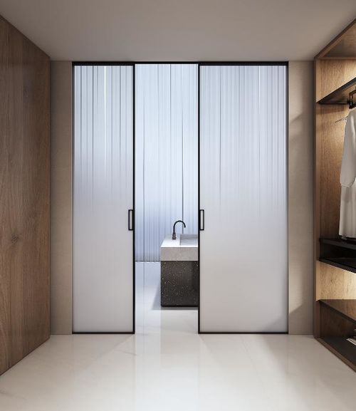 当衣帽间邂逅浴室,简约边框搭配蒙砂玻璃点缀加持,让分隔两个空间既保留了私密性,同时兼具连接功能性。整体动线流畅分明,延展秋日时光的温柔之序,为淋浴更衣带来随性惬意,舒爽柔美的感官体验。满眼皆是质感格调。