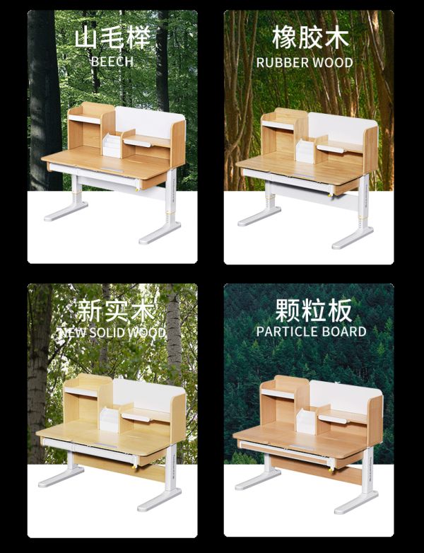 “以用户为中心”一直是护童科技产品创新研发的出发点,基于不同家庭、人群对不同板材的喜爱和需求,护童科技今年推出了艾虎系列儿童学习桌,就包括了四种不同板材:欧洲进口山毛榉 、泰国进口橡胶木、环保耐用新实木和抑菌防霉颗粒板。