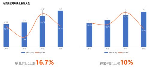 GIR环洋市场调研数据显示,2020年中国电饭煲销售额达89.13亿元;2021年,仅京东、天猫、淘宝、苏宁易购、国美在线5大线上渠道,电饭煲销售额就达73亿元、销售量3212万台。电饭煲凭借家庭刚需性,销量、销额持续上涨。