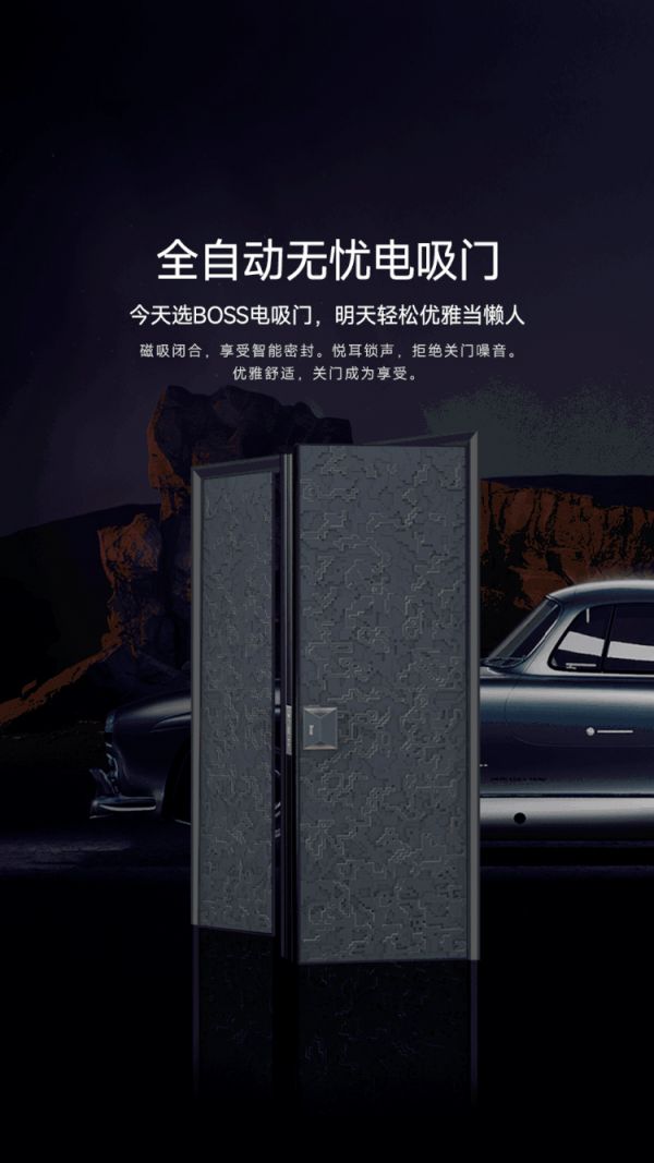 BOSS不仅仅是一个高端入户门品牌,更代表着一种生活方式和态度,其相信本着至臻优雅、源自创新的设计与理念,将持续满足精英人群享受极“质”的潜在需求,并超前提供应对未来趋势的优雅生活解决方案,致力于打造高端入户门新范式。