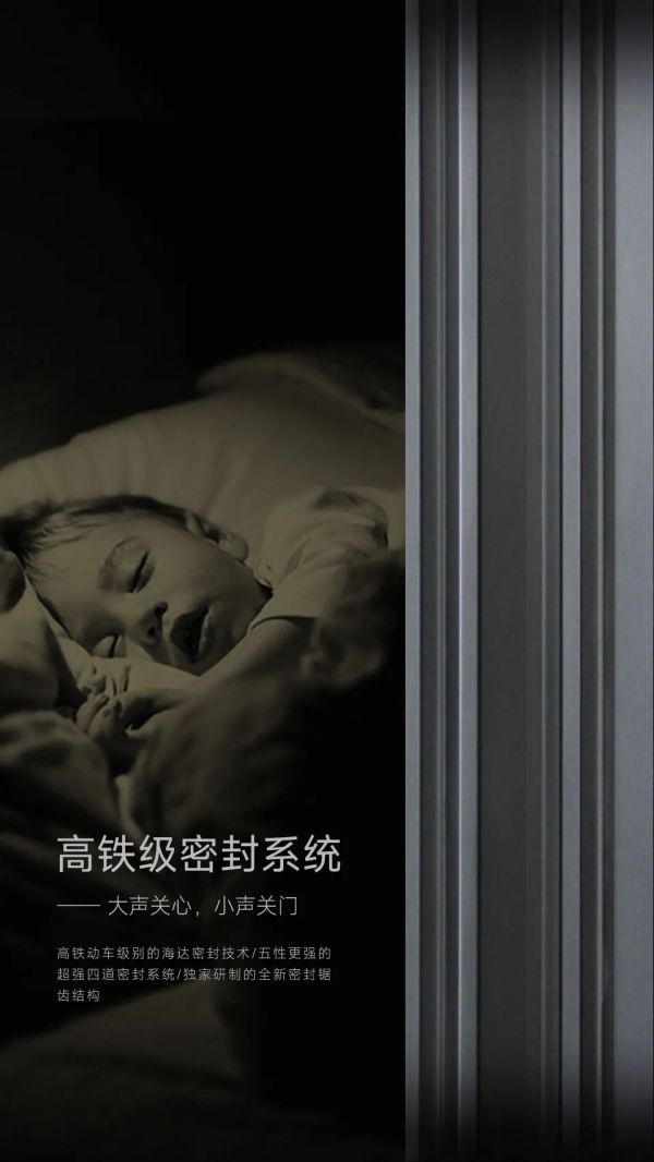 同时搭配高铁动车级别的海达密封系统,拥有独家首创的全新密封锯齿结构,有效降低90%以上噪音,韧性好、不易老化、隔热、气密功能强,可在40℃温差情况下保持室内恒温。