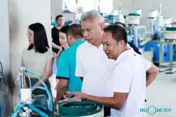 诺米黄总带领考察团近距离观察诺米的五金生产全过程,逐一生动地介绍诺米在全流程实现数字化、自动化、智能化的最新升级进展。