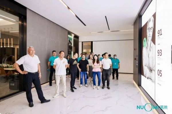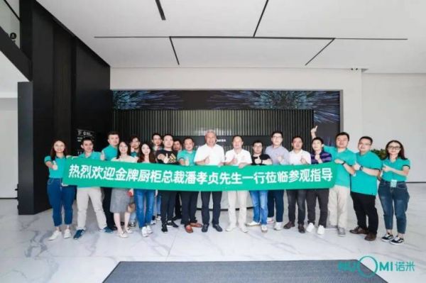 10月6日,金牌厨柜总裁潘孝贞先生一行莅临诺米佛山总部考察交流,诺米总经理黄健荣与高管团队一并迎候接待与陪同。