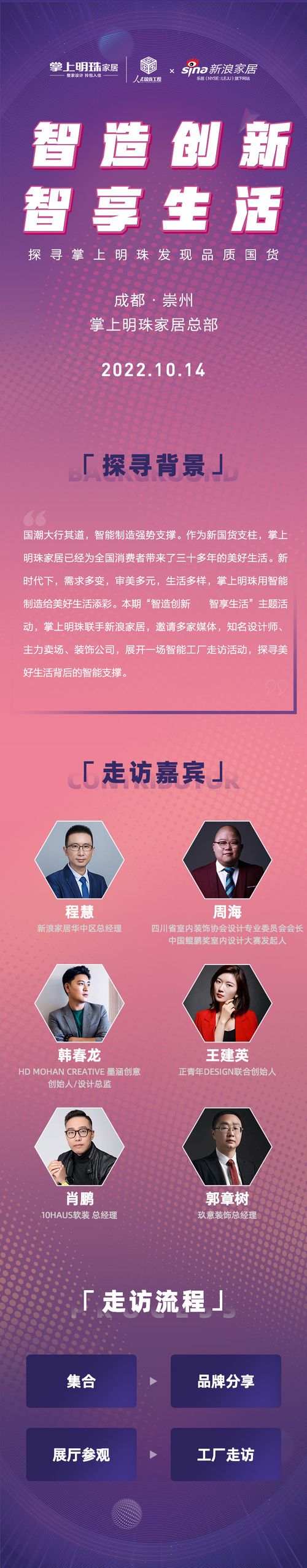 国潮大行其道,智能制造强势支撑。作为新国货支柱,掌上明珠家居已经为全国消费者带来了三十多年的美好生活。新时代下,需求多变,审美多元,生活多样,掌上明珠用智能制造给美好生活添彩。本期“智造创新 智享生活”主题活动,掌上明珠联手新浪家居,邀请知名设计师、主力卖场、装饰公司,展开一场智能工厂走访活动,探寻美好生活背后的智能支撑。