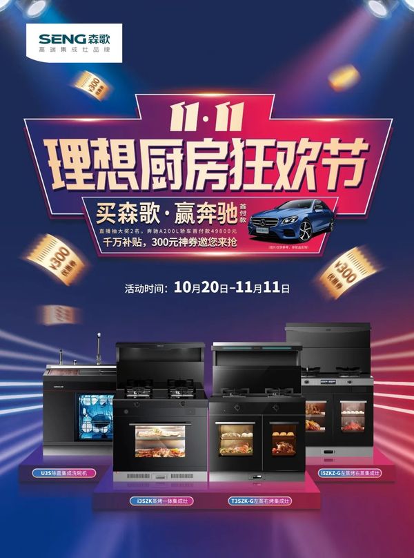 大动作!买集成灶赢奔驰!森歌双11超强福利抢鲜看!
