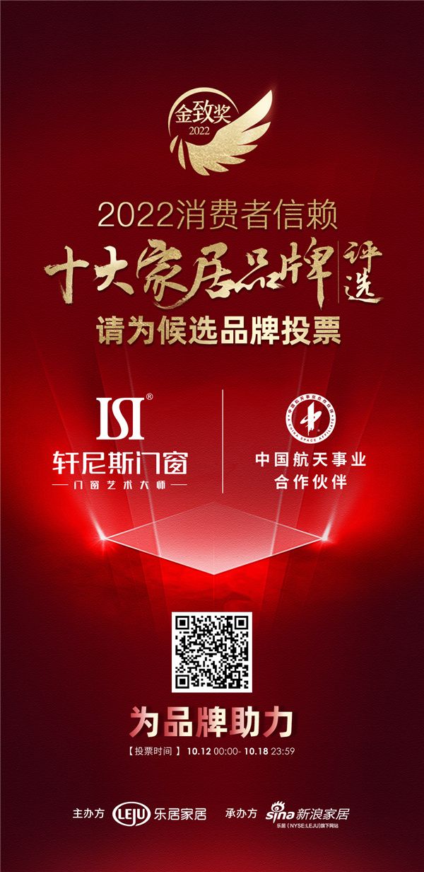 请投票!轩尼斯门窗正在参加#2022消费者信赖十大家居品牌 网络票选