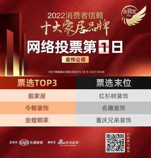 票选DAY1 | 消费者信赖装饰公司品牌,靓家居荣登榜首,今朝装饰、金螳螂家紧随其后