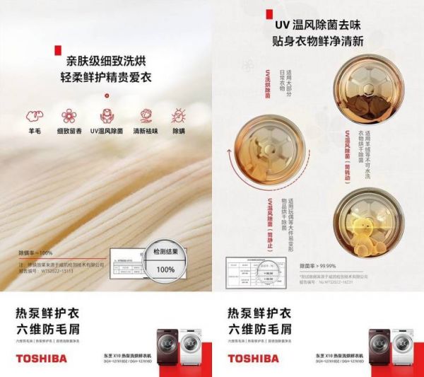 同时,东芝X10热泵洗烘鲜衣机还配置有热泵鲜护衣功能,能够有效解决烘不透、烘太过、有褶皱、有残留、易变形5大洗衣痛点。通过热泵适温柔烘,保持50°C以下低温烘干,能够细心呵护多种奢华材质;并且还配备1:1正反免熨烘和UV温风除菌功能,能够让衣物更加舒展不起皱的同时,做到99.99%的除菌率,守护家人的穿衣健康。