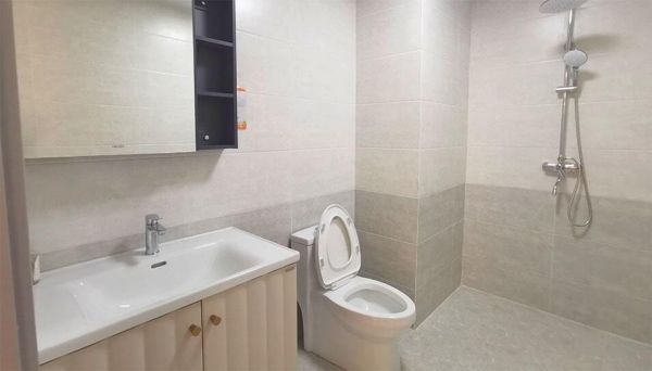 卫生间以实用性为主,空间去繁化简,合理配置划分区域。该设计中,以岩石纹理瓷砖搭配实木色盥洗台,透露出一股自然生态滋味,也暗合“传统&现代”之态,让人耳目一新。