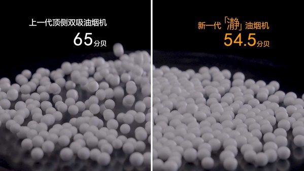 在风量相当的前提下,上一代顶侧双吸油烟机最大档位噪声为65.0dB(A),“瀞”油烟机仅为54.5dB(A),降噪效果非常明显。为了形象的体现噪音对耳膜的不良影响,中国家用电器研究院还做了一个有趣的小球实验,让噪音看得见。噪声强弱的差异通过小球的振幅的差距明显的展现出来。