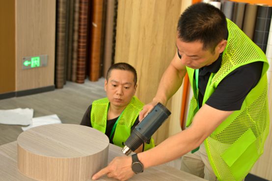 在施工培训实操环节,浪美资深贴膜师傅亲自指导,一边操作一边讲解,将装饰贴膜施工工艺的每个环节,每个关键点进行详细讲解与演示。在场学员严谨、认真的态度,对每个施工细节的把握,相互讨论交流,最终出色的完成了平面、曲面、柜体、转角等不同场景下的施工操作,让每一位学员熟练掌握了装饰贴膜施工技巧。