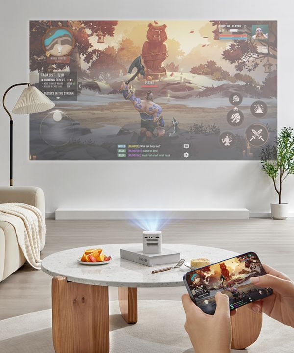 图兴S1的高能不止于此,同时它还是一台能够让你拥有宅家娱乐的便捷投影。如果你是个游戏迷,图兴S1可以让你感受大屏游戏的刺激畅快。通过HDMI接口连接游戏机,也可以使用投屏功能,就可以打造专属于你自己的游戏大屏;如果没有游戏设备,你也可以在系统中下载游戏畅玩。