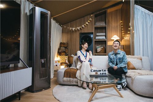 小黑提到,两人在天气好的时候会去郊游、露营,不仅能放松身心、呼吸新鲜空气,还能在大自然中邂逅更多灵感。而让她们没想到的是,如今不用出门,卡萨帝也可以带来舒适惬意的智慧客厅场景,空调带来双塔软风,让家里萦绕着阿尔卑斯山间、新西兰草原般的清新空气;冰吧可以独立分储、温湿精控,从里面取出水果、乳品,自己动手调制一杯下午茶,在DIY的过程中也能捕捉到不少创作灵感。