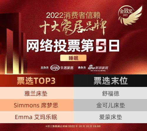 由乐居家居主办,新浪家居承办,CCTV《大国品牌》、家页、家居质量研究院、大国中居联合主办,全国工商联家具装饰业商会、中国建筑材料流通协会共同指导,乐腾商学院、家页智库、家居质量研究院提供研究支持的“2022消费者信赖十大家居品牌”于9月16日正式启动。经过企业申报、候选品牌公示环节后,该活动于10月12日正式进入投票环节。>>点击为睡眠类行业品牌投票