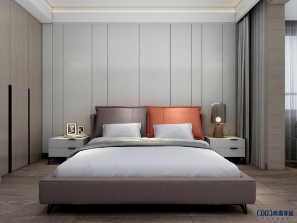 主卧室拥有一方阳台,窗外的美景触手可得,确保了充足的光线。同时设置了办公处,良好的布局结合极简的风格,展现了舒适、优雅的空间感。