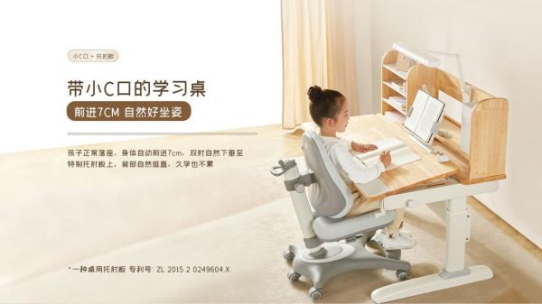 一套看似简单的学习桌椅,包含了许多复杂且核心的组件。比如:光明园迪学习桌拥有的“小C口”、“托肘板”、“阅读架”、“桌面角度显示器”、“倾斜桌面”等核心配置,看似简单,但是比直边桌板材工艺要求更高,制作工艺更加繁琐,都是为了使产品更加符合儿童的人体工程学而设计。以“小C口”设计为例,当孩子身体自然嵌入到纵深7cm的“小C口”,双臂会自然下垂,让颈肩自然放松,配合光明园迪首创的“三点一面”专利托肘板及书页夹、适合孩子身高的可调节座椅,可辅助孩子身体自然坐直,变传统的左右用眼为上下用眼,锻炼睫状肌,实现保护视力的功能。再比如,儿童健康学习桌上带有圆弧口的舒压面板设计,可以让孩子肘有托,肩不累,身体不前倾。此外,为了实现更多场景呵护儿童脊柱及视力健康,光明园迪学习桌全系配有四个角度(0度,12度,30度,40度)可调的角度指示器,为孩子各种学习娱乐使用场景进行调节,降低了脊椎变形、驼背、耸肩等不良影响发生的可能性。