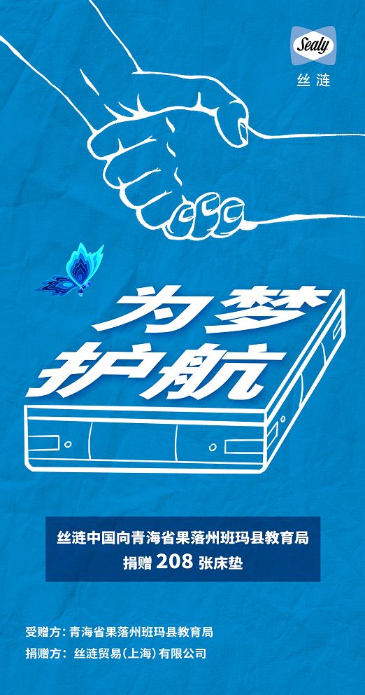 (上海,2022年10月17日)——日前,丝涟中国(以下简称丝涟)向青海省果洛州班玛县教育局捐赠了208张爱心床垫,为莘莘学子们送去健康睡眠,蓄力白天为实现梦想而学习,这也是丝涟每年以实际行动回馈社会,践行企业责任的公益项目。