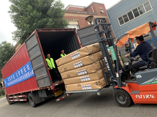 图:丝涟爱心床垫交由当地相关部门转运分配