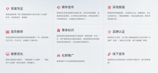 为鼓励优秀智能家居品牌广泛参与,突出优秀品牌榜样力量,提高公众对智能家居品牌认知,智家网将对获奖品牌颁发荣誉证书,并进行实地采访报道等多角度的品牌宣传: