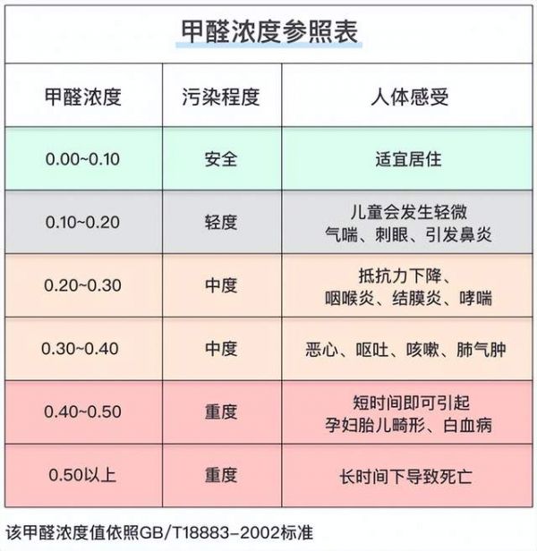以下提供不同的甲醛数值时人体的感受,仅供参考:
