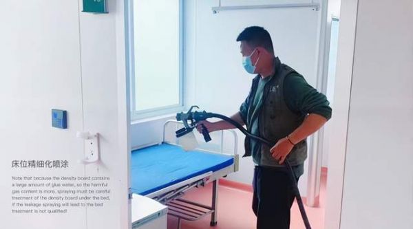 医院的办公桌和抽屉、柜子一般都是密度板或颗粒板,因此我们在治理时需要针对板材进行合理的产品搭配和喷涂,选择源头渗透净化异味、持久分解甲醛的产品进行精细、量化技术处理:
