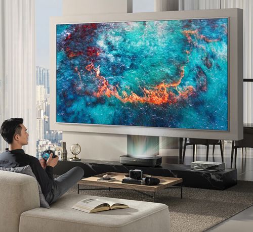 上半年中国彩电整体规模继续下行,但激光电视所在的75吋+高端大屏电视市场逆势扩容,销售额市占率达到35.91%,同比增长13.92个百分点,预计以激光显示、8K为代表的高端产品全年零售量增幅将达到100%。