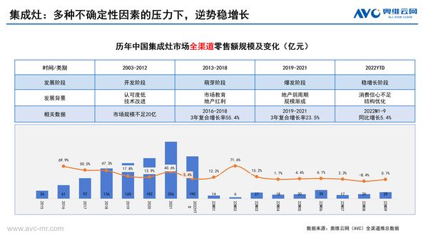 赵志伟指出,集成灶是近几年家电产业增长最好的大家电品类之一,在多种不确定性因素的压力下,逆势稳增长。据奥维云网(AVC)推总数据显示,2022年前三季度,集成灶市场规模190亿元,同比增长5.4%。