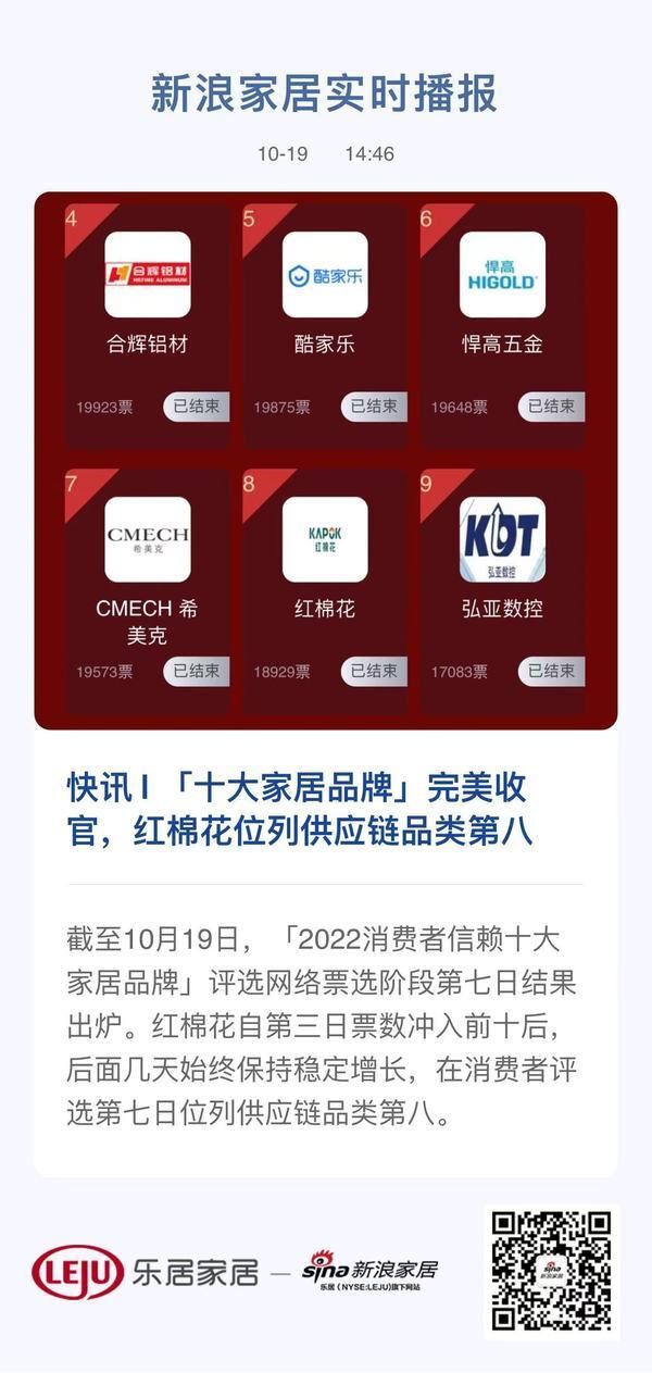 快讯 | 「十大家居品牌」完美收官,红棉花位列供应链品类第八