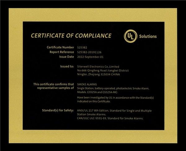 五年磨一剑,于2022年9月1日GS525A烟雾探测报警器正式拿到UL217新标准认证证书,凭借纳米级别的高精度光学传感引擎和业内领先的8核人工智能芯片,整机性能提升180%,其中误报率降低了99.6%,报警速度提高了66.5%,全面超越了国际品牌产品。GS525A烟雾报警器意味着赛特威尔在人工智能安防领域的研发水平已经站在了世界金字塔的顶端,成为了全球报警器行业的风向标,同时也在激烈的国际市场竞争中脱颖而出。