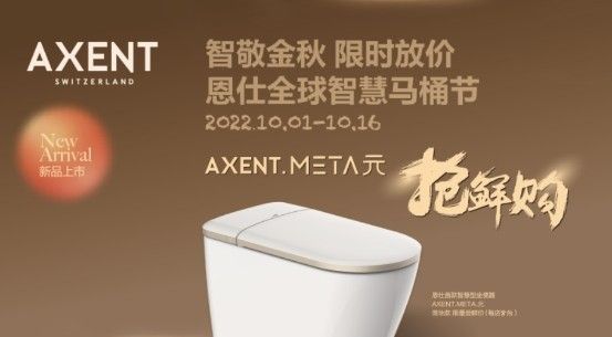 生活需要仪式感,浴室作为家居环境中最私密的空间,潮智的卫浴体验能让人卸下一身的疲惫,优秀的设计更能让人心旷神怡、放松身心。那么,如何将浴室变得更有仪式感?在AXENT全球智慧马桶节答案已经揭晓,全球领先的整体智能卫浴解决方案供应商AXENT恩仕携新品META元智慧型坐便器而来,以极简产品理念契合精英人士现代化、国际化的生活态度,限时优惠掀起金秋卫浴空间潮流。
