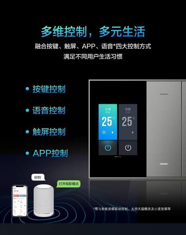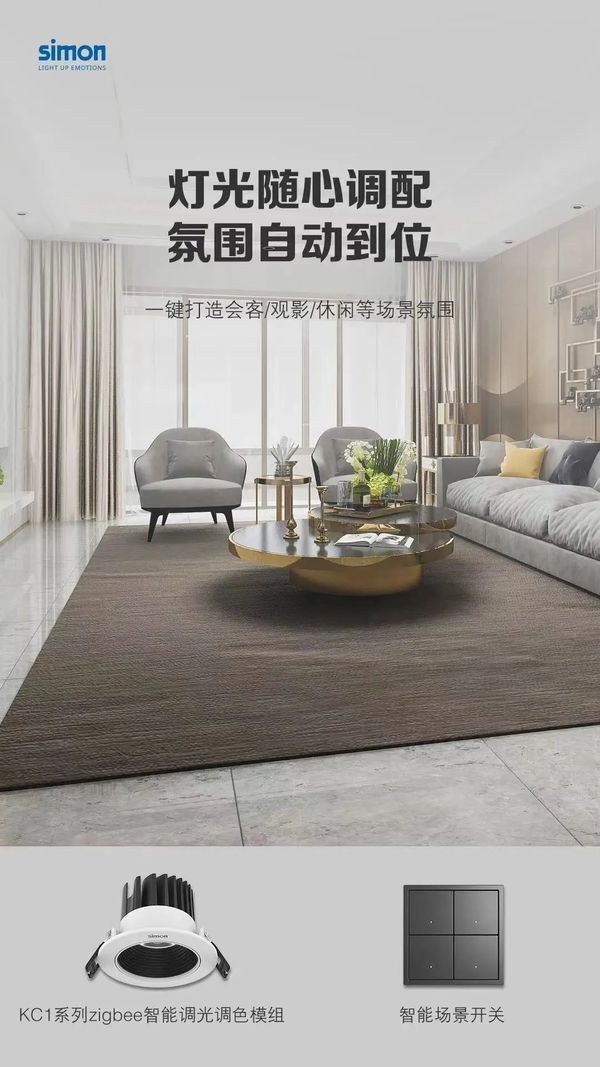 在墙面上就能查看全屋设备状态,不用手机的老人和孩子也能轻松学会;到家后,按下按键,就能开启设定好的“回家模式”,客厅筒射灯的组合光线亮起,无需逐一按下开关……客厅休闲时,对智能音箱说出“观影模式”,灯光便切换至亮度30% 的温馨暖白光,轻松营造大片氛围感;在西蒙智享App中设置定时,每晚固定时间亮起清晰明亮的冷白光,提醒自己快速进入专注的阅读状态,让日常“充电”更有仪式感。