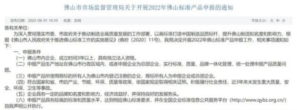 查阅佛山市市场监督管理局的文件获悉,“佛山标准产品”确实是有一定门槛的,比如申报条件中,要求“符合国家和省、市的产业、节能、环保、质量等政策,近3年来未发生重大质量、安全、环保、卫生事故”,“企业具有一定的品牌知名度和影响力,经济效益好,并保持良好的发展势头”,“申报产品具有较高的标准和质量水平,达到相应佛山标准要求,并在全国企业标准信息公共服务平台自我声明公开执行”。