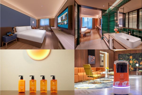桔子酒店房间配有智能客控,AI智能音箱为你随心操控客房灯光/窗帘/音乐等,让出门在外的你宾至如归。活力高效的智能送物机器人,足不出户外卖上门,是备受客人们喜爱的“小可爱”。定制的甜橙天然精油洗护,清新活力的桔香,为旅途中的你瞬间焕活身心。