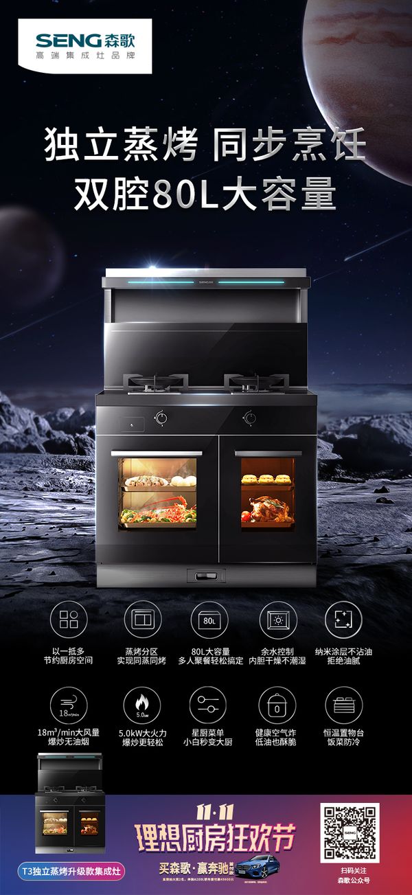 森歌双11理想厨房狂欢节已经全面开启,从即日起到11月11日,买森歌,抽奔驰,赢大奖,获免单,森歌等着你的到来!