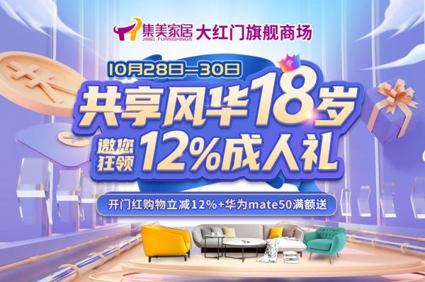 购物立减12%:集美家居18周年让利消费者活动开启!