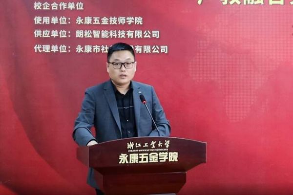 朗松智能与永康五金技师学院的签约,便是要解决企业用工难的痛点,让更多人愿意去工厂工作,让企业更高效,且稳健的向前发展。最后,迟总说, 今天是朗松智能科技有限公司载入公司史册的一天,再次非常感谢学校领导以及永康市社发建设有限公司对朗松信任和支持。我们会保证,以最高标准,保质,保量,按时完成任务。