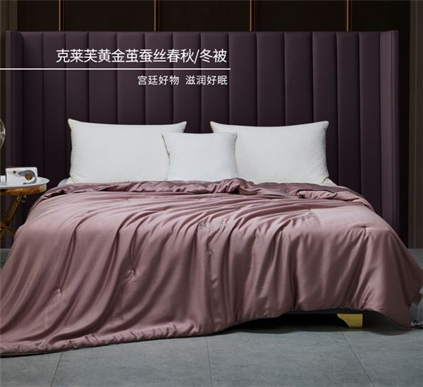 一直以来,蚕丝因其含有丰富的氨基酸,深受女性的喜爱。2022艾莱依家纺克莱芙黄金茧蚕丝被选用的黄金茧,除了拥有普通蚕丝的各种优点,更有“贡品”美誉和升级优势。首先,天然黄金丝无染色,自带一股天然的桑芽味,爽滑吸湿,亲肤性好,清香怡然,对于嗅觉神经十分灵敏的人(尤其适合宝宝),黄金丝散发出的淡淡的清香能起到安神的作用,使人更快的入睡。其次,黄金丝的黄酮含量较高,比普通蚕丝高30%,抑菌率均在90%以上。并且黄酮具有抗氧化作用,又可以分解、消除多重活性自由基,睡在黄金丝里面,就像是做一个全方位无死角的SPA,在睡眠中缓慢修复劳累肌肤,安神助眠,治愈身心。