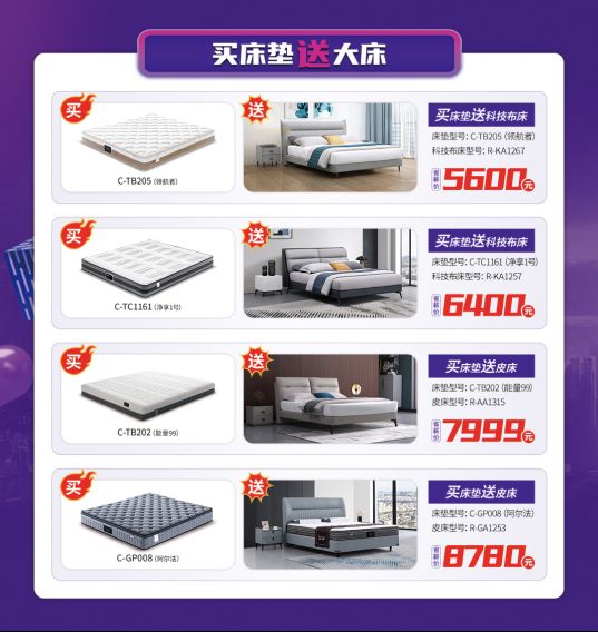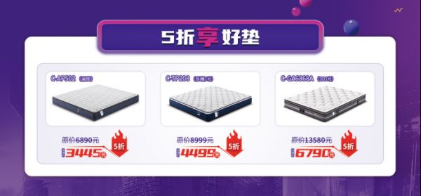 活动期间,明星床垫限时5折,以晚安今年的爆款乐睡1号床垫为例,原价为8999元,双11期间直降至4999元,降价幅度达到5000元。