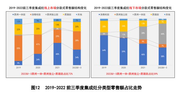 根据奥维云网(AVC)监测数据显示,2022 年 1-8 月集成灶线上市场容量在 75L 及以上占比 5%,相比 2021 年全年提升 4 个百分点;线下市场容量在 75L 及以上占比 6%,相比 2021 年全年提升 4 个百分点。